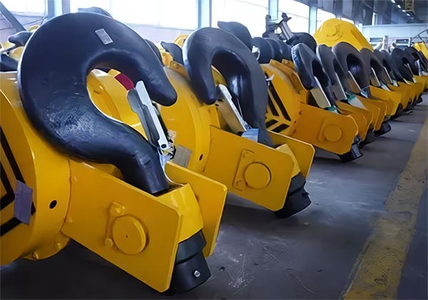 Due to the characteristics of simple manufacture and strong usability, crane hook group is used widely to handle materials. As the most widely used loads handling devices, crane hook groups are usually used with hoist or crane machinery for handling materials in various applications in different industries. Metallurgy, mining, chemical, light industry and other industries. Single hook is simple to manufacture and easy to use, but the force is unevenly spread, most of it is used in the work place with the lifting weight less than 80 tons. Large lifting weight often adopts double hooks with symmetrical force.